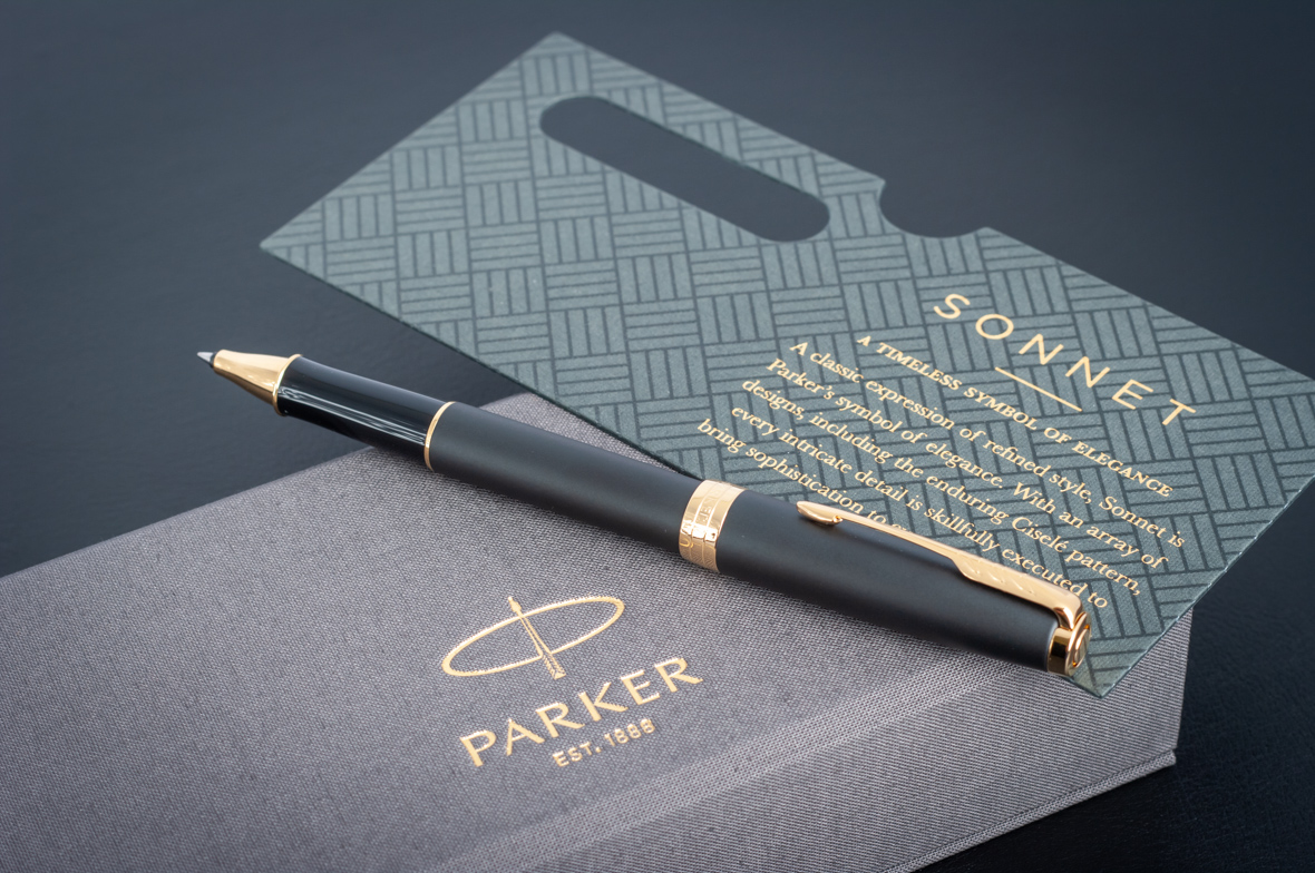 Ручка роллер Parker Sonnet Matte Black GT от официального дилера Parker в Екатеринбурге. Вы можете дополнительно заказать гравировку, которая подчеркнет Вашу оригинальность и придаст памятность статусному подарку. Все ручки Паркер поставляются в фирменном футляре.
